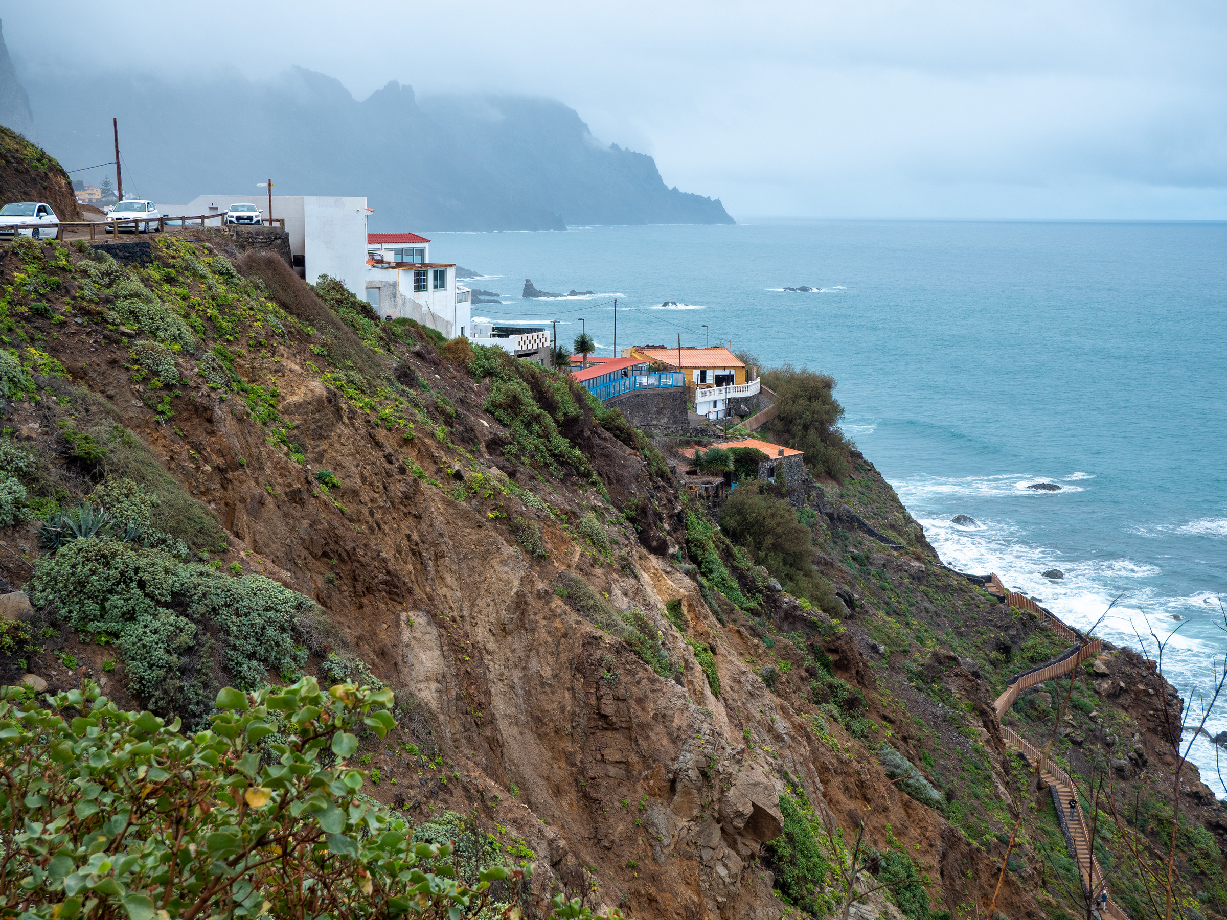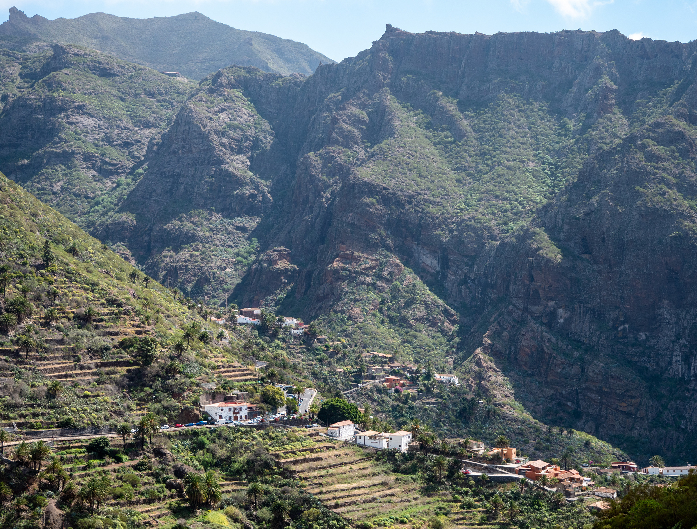 Уникальность острова Тенерифе на мой взгляд прежде всего в разнообразии. Разнообразии  ландшафтов и даже климата. Засушливый и пустынный юг, труднодоступный горный северо-запад, субтропический север, туманный покрытый густым лесом северо-восток. И в центре грозный вулкан Тейде. На снимке внизу – деревня Маска, до которой добраться можно по головокружительному серпантину.