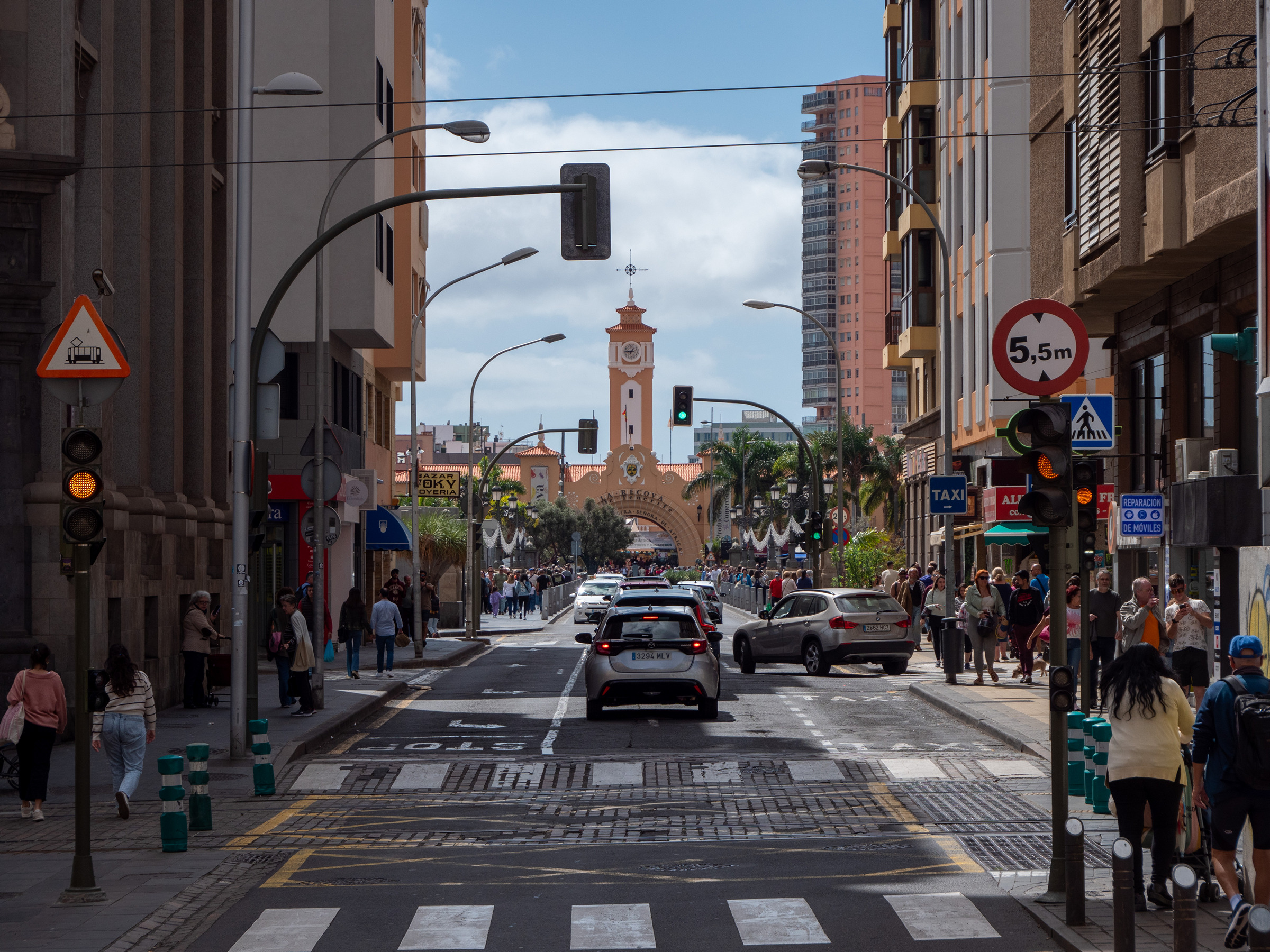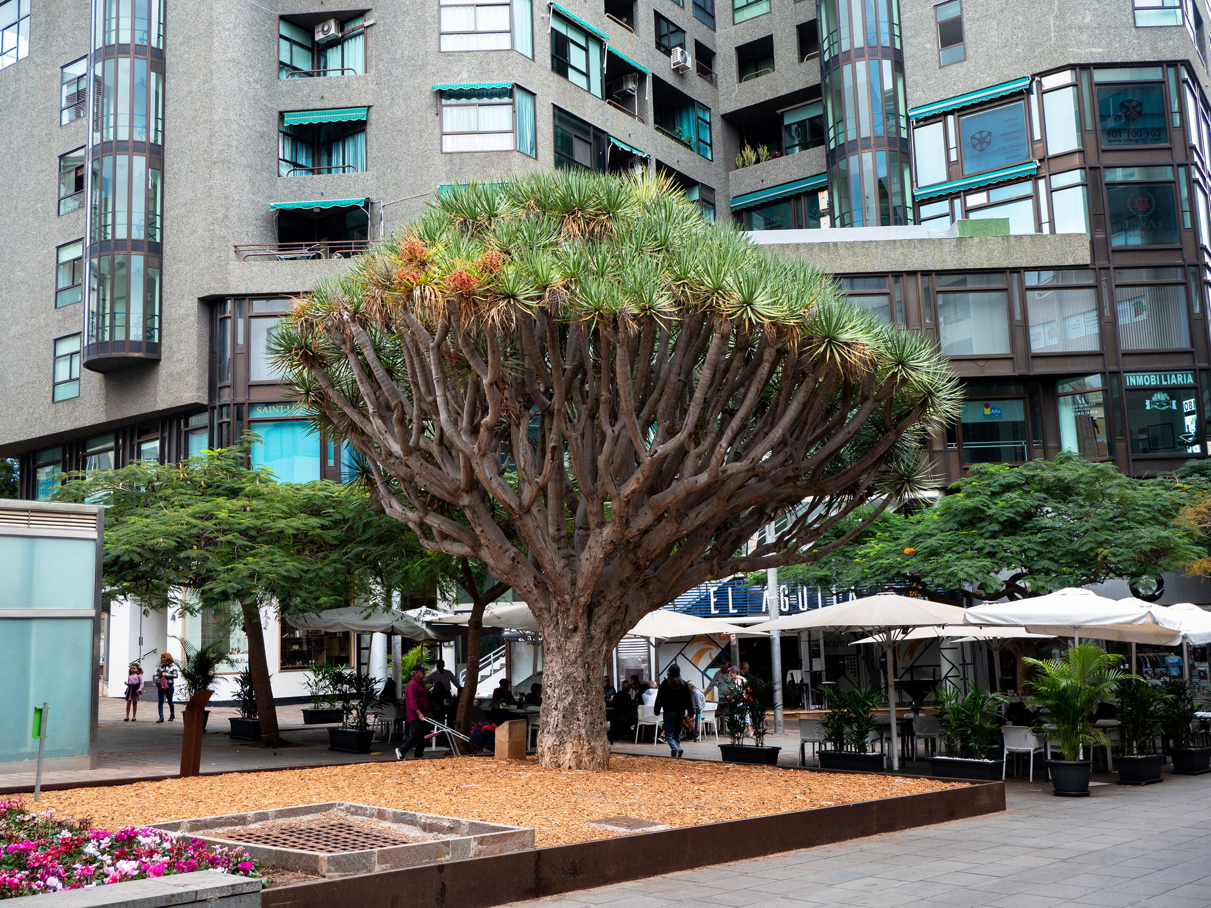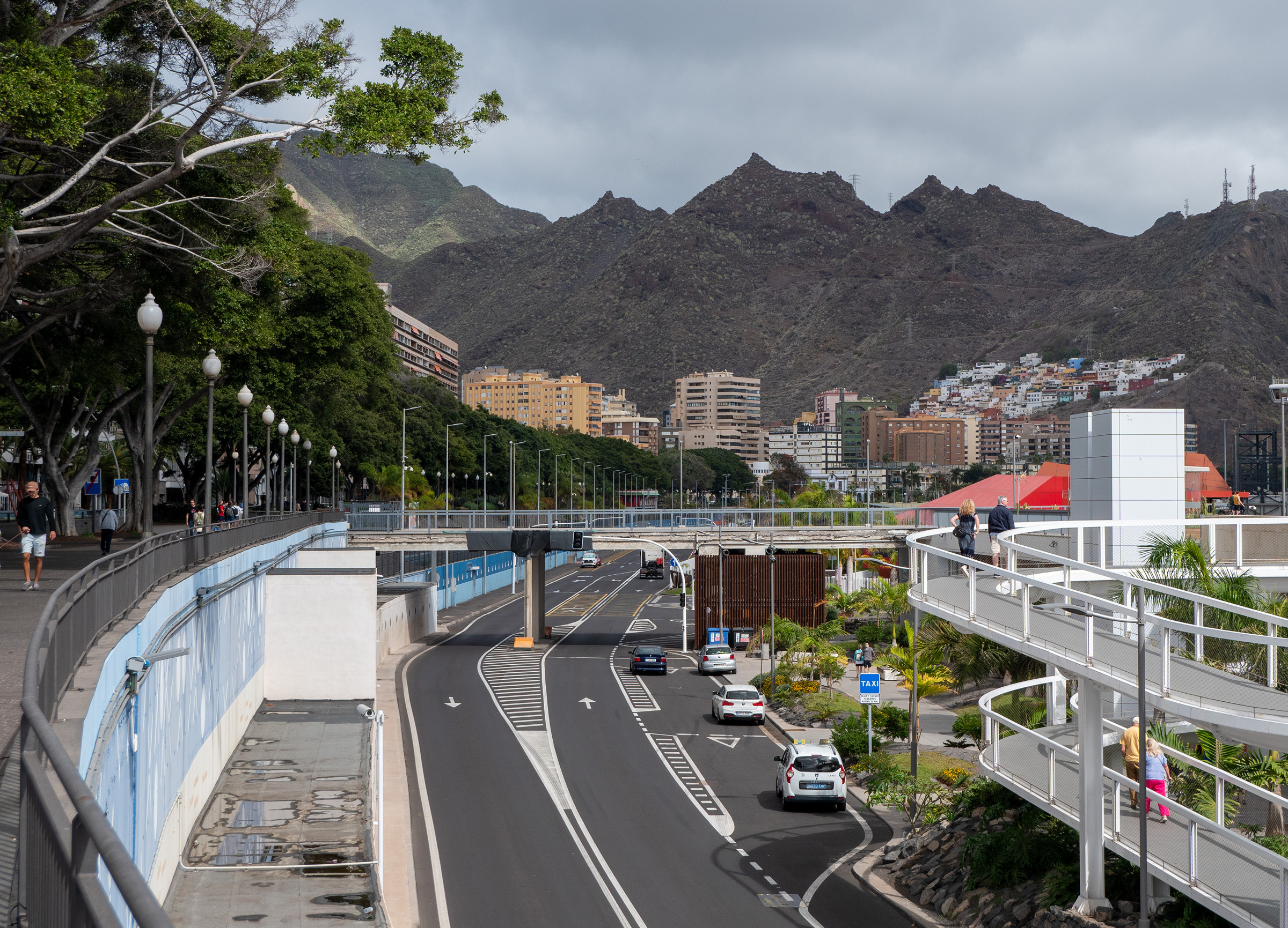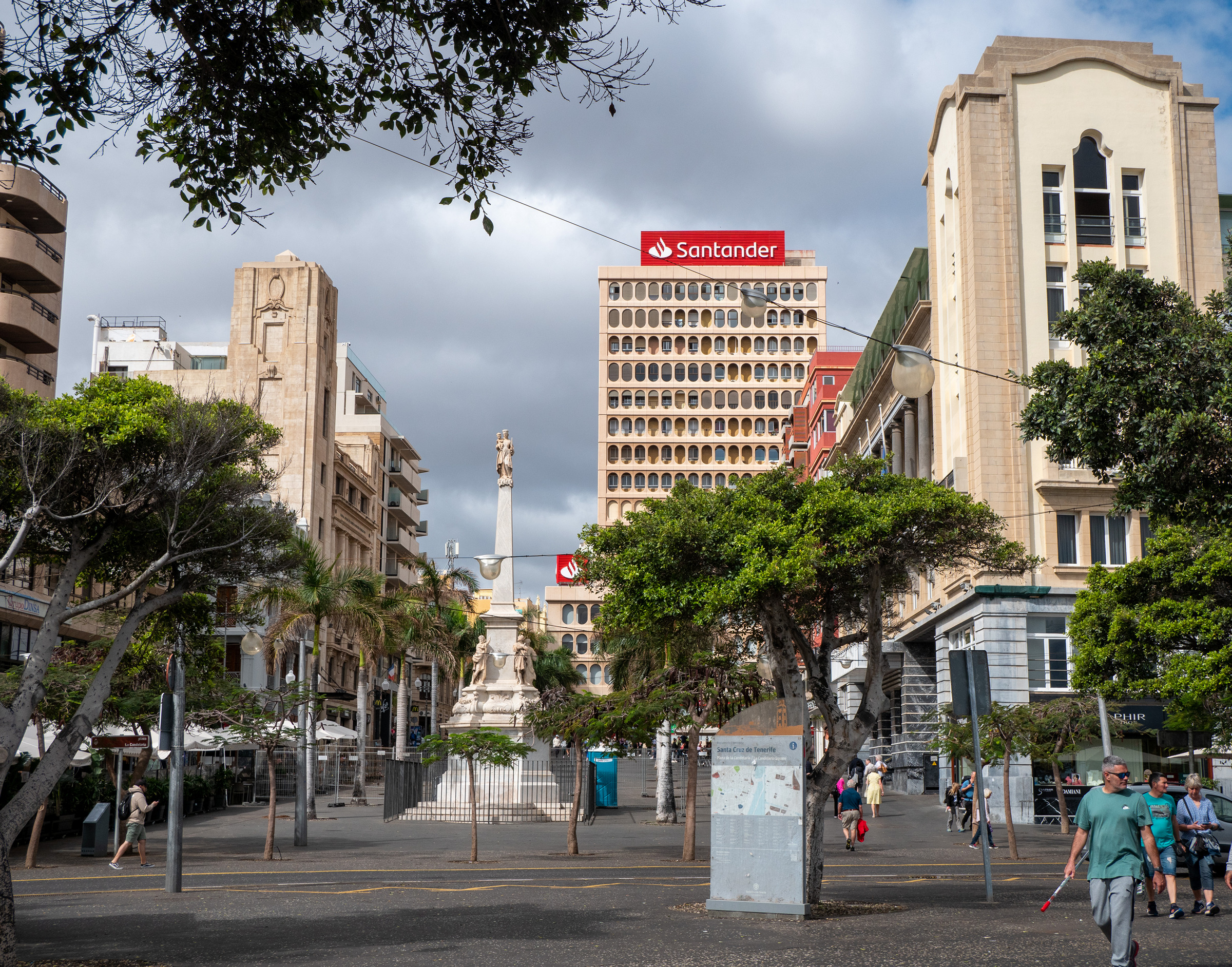 В отличие от Паганеля я не страдаю высокомерием и подъем на Тенерифский пик, как они называли Тейде, в мои планы входило. Для этого я малодушно воспользовался канатной дорогой, которую кстати можно видеть на фото вверху. Билеты на канатную дорогу лучше покупать заранее. С верхней станции взору открывается огромный старый кратер вулкана. Старый, потому что новый кратер находится еще выше метров на двести. Отсюда, если бы не облака, можно было бы увидеть весь остров. Вулкан и территория вокруг площадью почти 200 квадратных километров – это национальный парк Тейде, открытый в 1954 году. На этой высоте почти всегда чистое небо, и именно поэтому по соседству расположена обсерватория. Для того чтобы не создавать проблем с людским потоком и дать возможность всем насладиться великолепной панорамой, наверху можно находиться не больше часа. По крайней мере такое предупреждение висит на станции. Не знаю что будет если задержаться на подольше: аннулируют обратный билет и заставят спучскаться пешком? Вряд ли. Я проверять не стал. Но час пролетел незаметно. До вершины вулкана всего около 200 метров, и подняться туда можно только пешком и в составе группы с гидом. Я решил что для первого знакомства канатной дороги будет достаточно. На этой фотографии видно, как масса облаков, двигаясь с северной Атлантики, накатывается на остров как волна на берег и не поднимается выше определенной границы. Там, под облаками, в этот момент может идти дождь, в то время как здесь наверху ярко светит солнце. На горизонте над облаками поднимаются горы соседних островов. Судя по направлению, это остров Гран-Канария, до которого от Тенерифе всего 60 километров. Пейзажи вокруг вулкана совершенно нереальные. Если бы я снимал кино про Марс, здесь бы не понадобились спецэффекты. Тейде кстати считается активным вулканом, извержения в прошлом происходили примерно раз в столетие. Последнее было в 1909 году. Так что теоретически новое извержение может начаться хоть завтра. Одним из извержений в 1706 году был уничтожен старый порт города Гарачико на северном побережье. Сегодня о тех событиях напоминает только склон горы черного цвета. Люди продолжают селиться и строить свои дома в этих потенциально опасных местах. Гарачико же из самого большого порта на Тенерифе в начале 18 века превратился в небольшой городок, живущий за счет туристов. Самым же большим городом острова является Санта Круз. Отсюда далеко до вулкана и он находится в безопасности. Санта-Круз-де-Тенерифе с населением больше полумиллиона человек является самым большим городом острова, и вторым по населению на Канарских островах. В городе есть все что нужно для современной жизни: магазины на любой вкус, крупные торговые центры, международный аэропорт (а всего их на Тенерифе кстати два) и прочая инфраструктура. Гуляя по центру города трудно представить, что вы находитесь на отдаленном от Европы острове поблизости от африканского побережья. Многолюдный пешеходный центр, ничем не отличающийся от других европейских городов. Те же зеленые скверы, магазины знакомых брендов, рестораны с выставленными наружу столиками, в местном климате наверняка круглый год. Завоевание Испанией Канарских островов шло весь 15 век, и последним пал именно остров Тенерифе. Сегодня не только Гуанчи, коренной народ Канарских островов, раствор